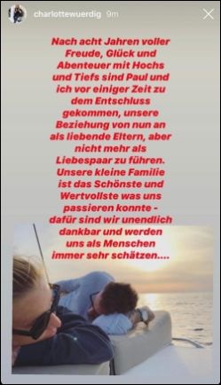 Das Statement veröffentlichte die Blondine in ihrer Instagram-Story, passend dazu ein gemeinsames Foto, das sie und ihren Noch-Ehemann friedlich beieinander zeigt. "Unsere kleine Familie ist das Schönste und Wertvollste, was uns passieren konnte – dafür sind wir unendlich dankbar und werden uns als Menschen immer sehr schätzen."