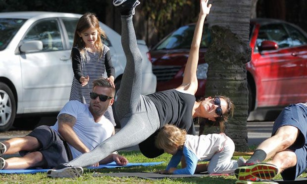 Und während Mutti sich in einem Park in Los Angeles plagt, haben die Kinder Anja (6) und Noah (2) ihre Hetz bei der Turnerei.