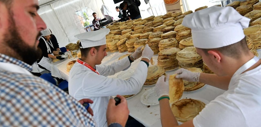 Jeder ihrer Handgriffe wurde dabei von 15 Richtern kritisch beäugt. Auch wenn es bis zur offiziellen Bestätigung noch etwa zwei Monate dauern wird, der Weltrekord scheint ihnen sicher. Dieser wird aktuell von einem russischen Team gehalten, das erst vergangenes Jahr in Moskau 12.716 Palatschinken herausgebacken hatte.