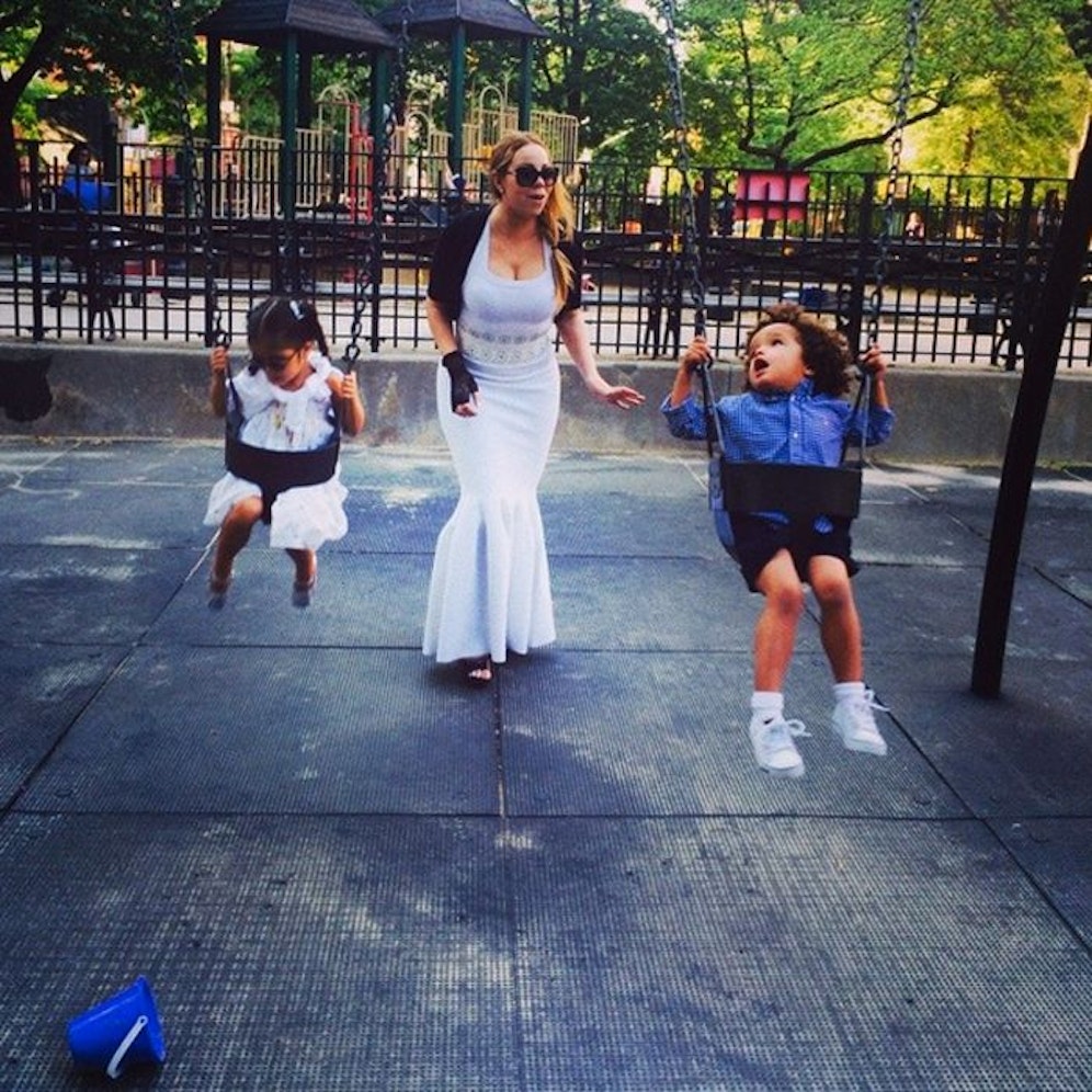 (44) ist durch und durch Diva. Das stellte die Sängerin nun erneut unter Beweis. In einer weißen, bodenlangen Abendrobe begleitete Carey ihre Zwillinge zum Spielplatz - und verlieh so dem Begriff "overdressed" eine vollkommen neue Bedeutung.