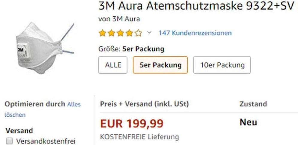 In den USA hat Amazon laut einem Bericht von "Wired"bereits mehrere Verkäufer abgemahnt und gedroht, ihre Angebote von Atemschutzmasken zu löschen, sollten diese weiter überteuert angeboten werden.
