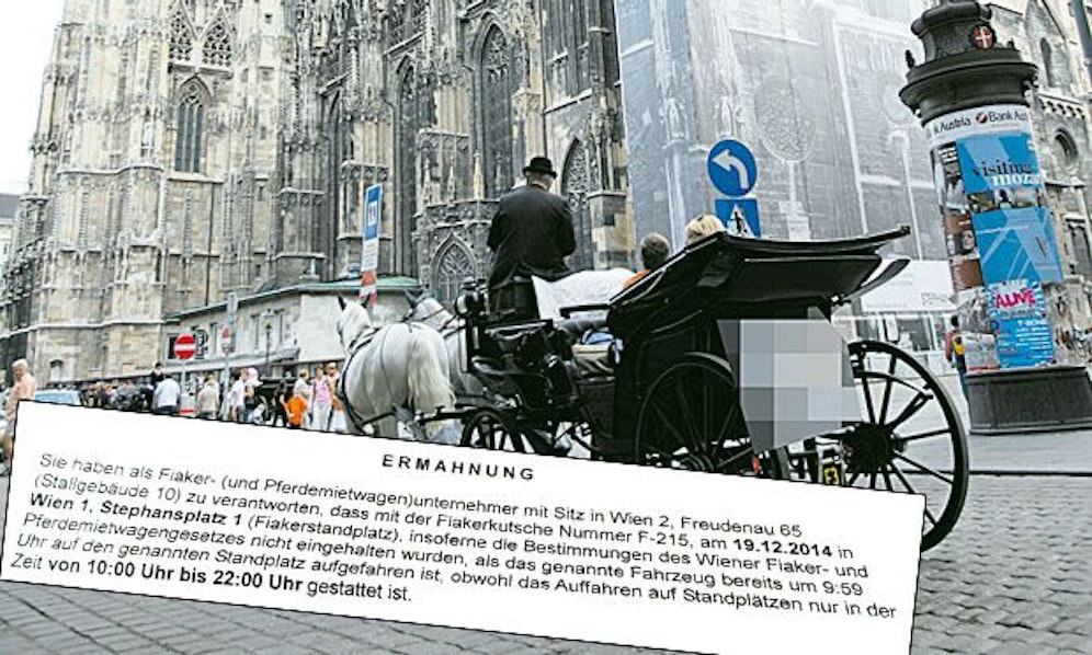 Weil ein Fiaker seine Pferdekutsche vergangenen Dezember um ganze sechzig Sekunden (sic!) vor der erlaubten Zeit am Stellplatz vor dem Steffl abgestellt hatte, wurden die Gesetzeshüter aktiv. Der Kutscher erhielt dieser Tage ein amtliches Schreiben, er habe so gegen Paragraph 3 des Wiener Fiaker- und Pferdemietwagengesetzes verstoßen.