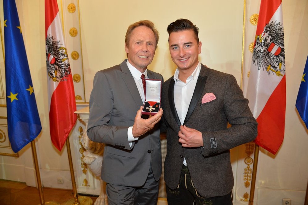 Bei der Verleihung des österreichischen Ehrenkreuzes für Wissenschaft und Kunst an Entertainer-Legende Peter Kraus verzichtete Laudator Andreas Gabalier nicht auf seine geliebten Lederhosen. Ganz honorig gestylt mit dabei: Dagmar Koller und viele mehr.