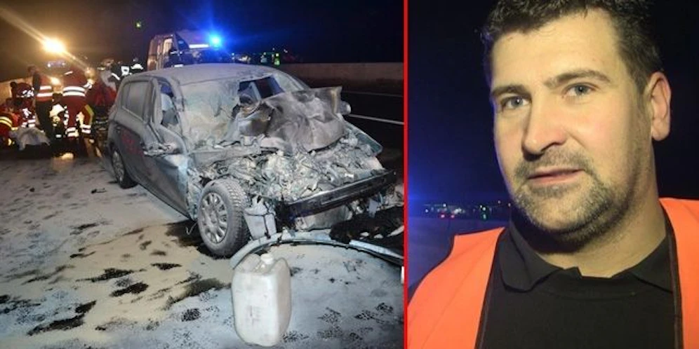 Donnerstagfrüh kam es zu einem schweren Auffahrunfall auf der Semmering Schnellstraße. Danach spielten sich dramatische Szenen ab. Ein Wagen fing Feuer, der Lenker drohte zu verbrennen. Ein nachkommender Autofahrer reagierte blitzschnell. Er löschte zuerst den Brand und zog den Schwerverletzten aus dem Wagen.