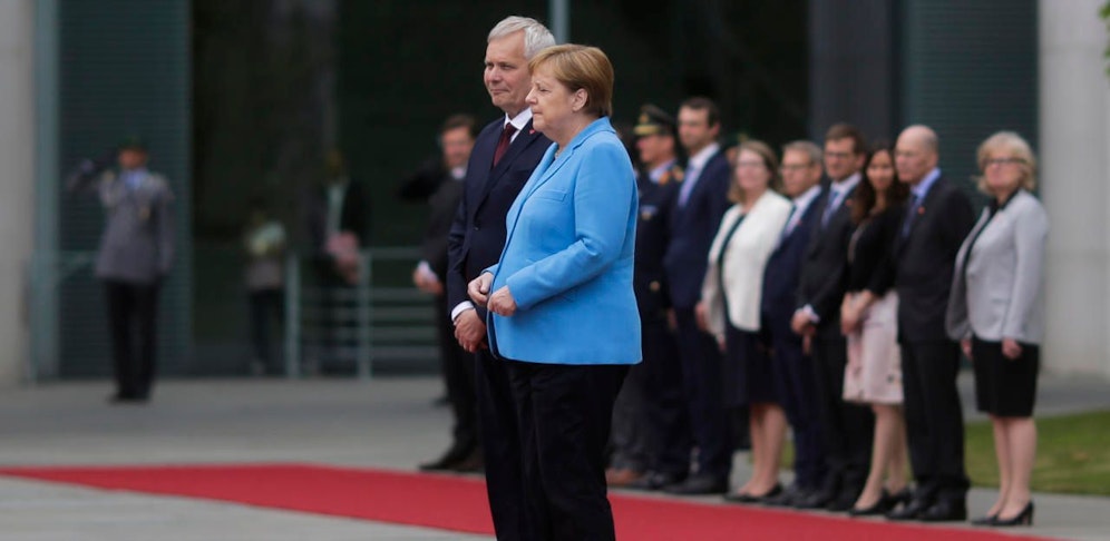 Beim Staatsempfang des finnischen Ministerpräsidenten Antti Rinne begann Deutschlands Kanzlerin Angela Merkel erneut zu zittern, als die Bundeshymnen abgespielt wurden.