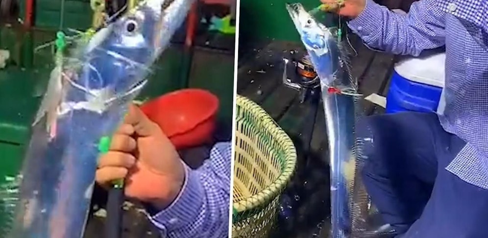 Ein Angler hat vermutlich den Fang seines Lebens gemacht und einen ganz seltenen Fisch aus dem Wasser gezogen. Dem Fischer ist tatsächlich ein Sägedegenfisch ins Netz gegangen.
