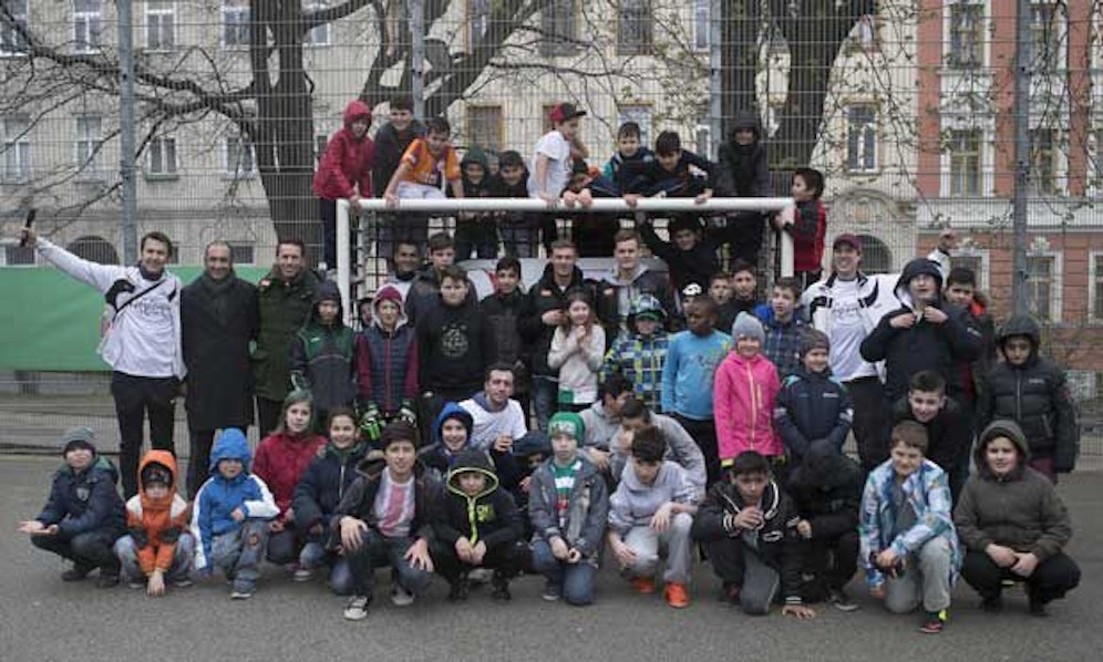 Unter dem Motto "Der SK Rapid – ein Verein zum Anfassen" besuchen Kicker, Trainer und Scouts des Wiener Rekordmeisters Fußball-Käfige.