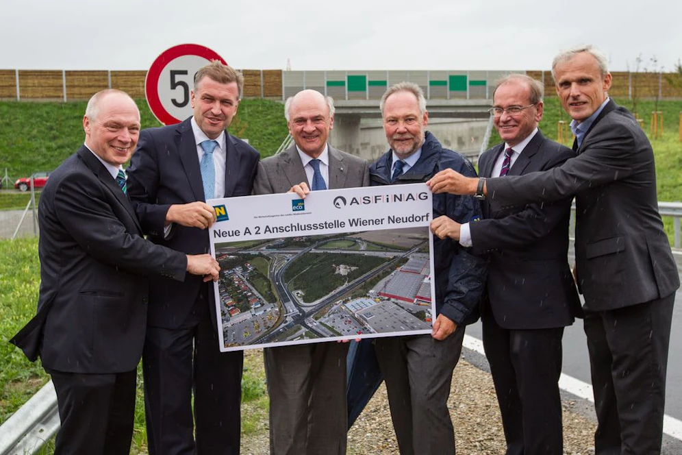 "Wr. Neudorf ist einer der wichtigsten Wirtschaftsstandorte in Niederösterreich. Jetzt wurde die Verkehrssituation verbessert und die Sicherheit erhöht", freute sich Landeshauptmann Erwin Pröll bei der Eröffnung am Dienstag. Gemeinsam mit dem Land Niederösterreich hatte die Asfinag die neue A2-Anschlussstelle umgesetzt, die Kosten machten 9,8 Millionen Euro aus.