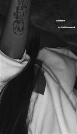 Ein Foto in ihrer Instagram-Story (siehe rechts) zeigt, dass sie sich ein riesiges Porträt der Titelfigur aus dem gleichnamigen Film "Chihiro" stechen ließ. Erst vor wenigen Tagen postete die 25-Jährige mehrere Szenenbilder aus dem Film.