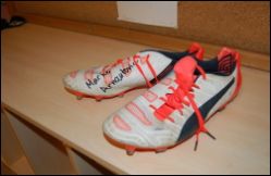 Nun sollen die Fußballpatschen versteigert werden, damit alle Kinder mitfahren können. Rath: „Bis Mitte Oktober sammle ich Angebote ein." Hoffentlich gibt's einen Volltreffer!