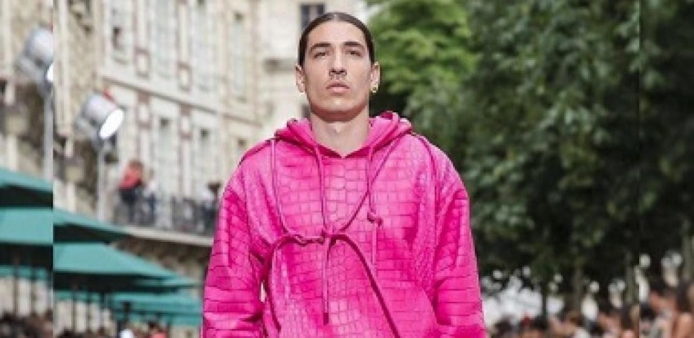 Pink statt Rot! Hector Bellerin tauscht sein Arsenal-Trikot gegen knalliges Pink. Der Rechtsverteidiger der Gunners versucht sich als Model und tritt im extravaganten Jogger von Louis Vuitton auf der Pariser Fashion Week auf.
