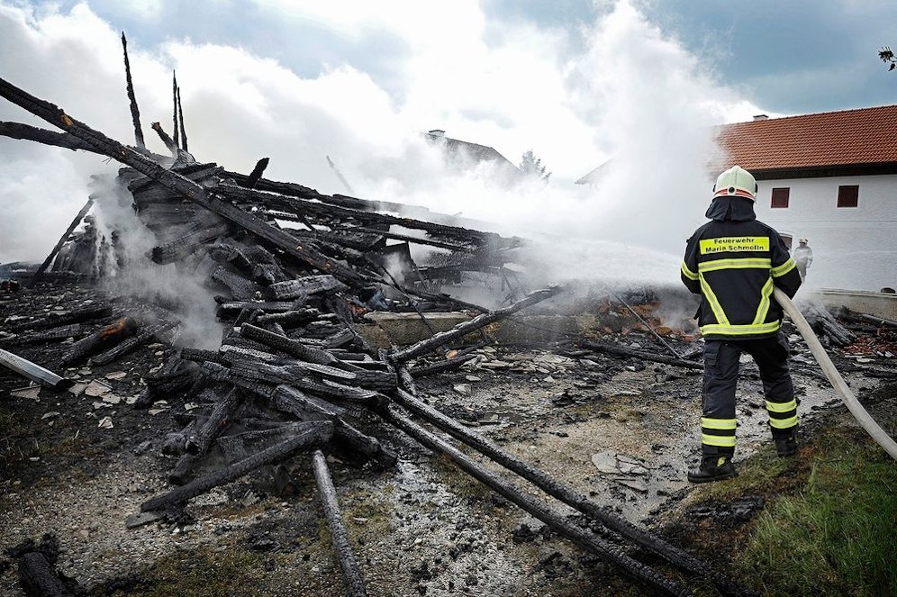 Neun Feuerwehren hatten am Mittwochmittag gegen die Flammen gekämpft, doch das Nebengebäude des Bauernhofes war nicht mehr zu retten. Eine Pensionistin (84), die sich im Wohngebäude aufhielt, wurde vorsorglich ins Spital gebracht. Auslöser war wohl Ofen-Asche, die in einer Schubkarre entsorgt wurde und Reisig entzündet hatte. Kurz darauf soll ein Jogger den Stadlbrand bemerkt haben.