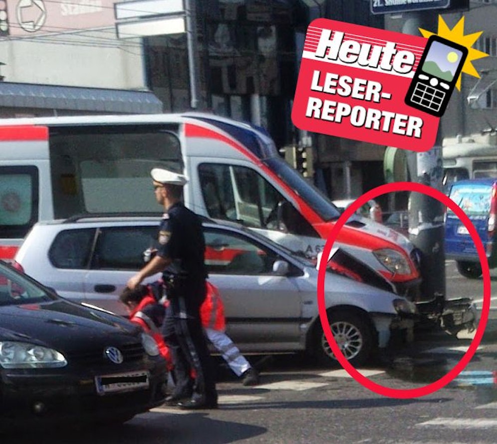 Dieser Unfall ereignete sich im 21. Bezirk, Shuttelworthstrasse Kreuzung Brünnerstrasse, so unser Leserreporter.
