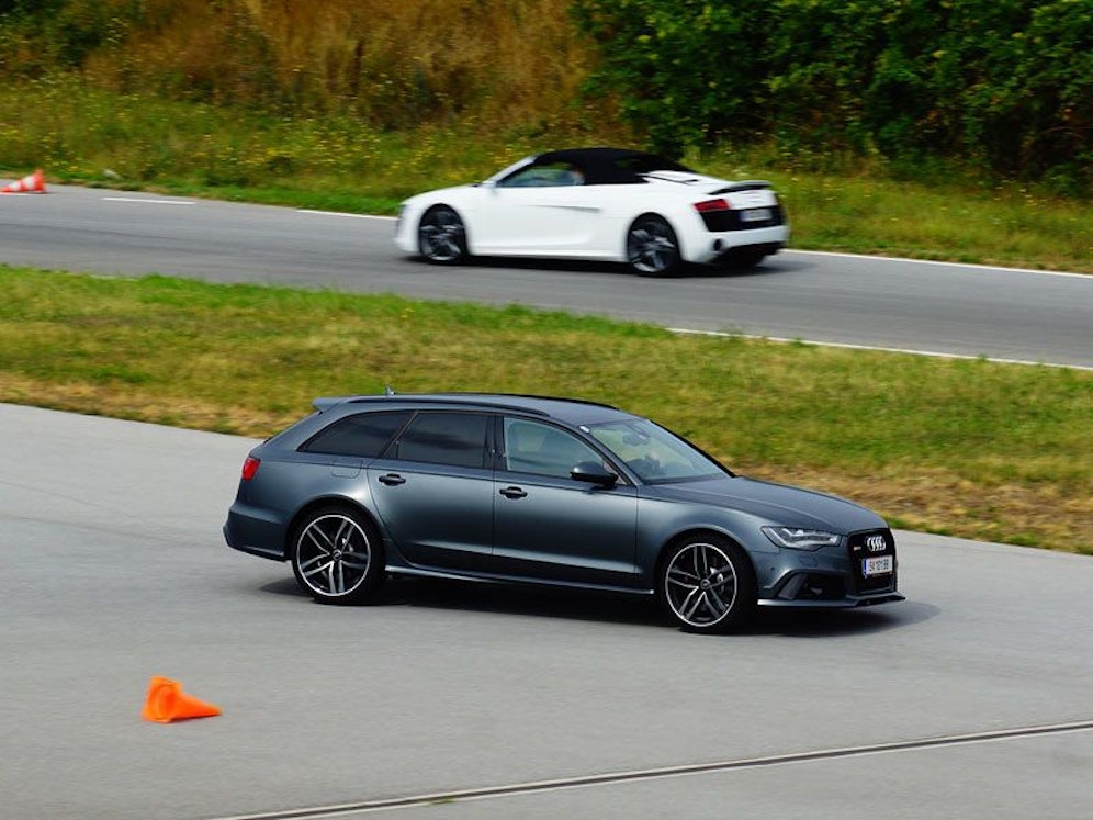 Sehr beeindruckend ist aber auch die enorme Kraftentfaltung beim Audi RS6 Avant. Zwar merkt man ihm seine Größe durchaus an, dennoch lässt er sich geschmeidig über einen eng ausgesteckten Parcours bewegen.
