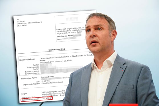 Neben den Müllgebühren blieb drei Mal auch die Seuchenvorsorgeabgabe offen. Mahngebühren steigerten die Forderungen des Gemeindeverbands für Abfallwirtschaft Baden auf die insgesamt rund 285 Euro. Mittlerweile dürfte Andreas Babler die offenen Forderungen beglichen haben. In einem aktuellen Grundbuchsauszug ist kein Pfandrecht mehr ersichtlich. Inklusive Spesen für die Exekution hat die Aktion Babler rund 363 Euro gekostet.