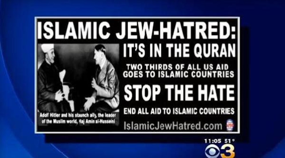 Islamgegner machen jetzt in Philadelphia mit einem Bild von Adolf Hitler Stimmung gegen Muslime. Auf dem Plakat mit der Aufschrift "Islamischer Judenhass: Es steht im Koran" ist ein Foto aus dem Jahr 1941 zu sehen, auf dem der Hitler sich mit dem Großmufti Amin al-Husseini unterhält. Der Palästinenserführer zählte zu den wichtigsten Verbündeten Hitlers im arabischen Raum.