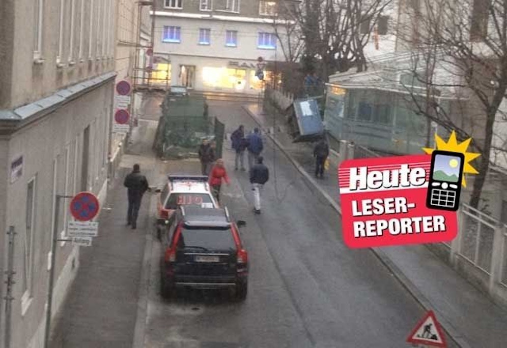 Riesiges Glück hatten am Montag Patienten und Personal des St. Anna Kinderspitals in Alsergrund. Urplötzlich krachten Teile eines Baustellenaufzugs vor dem Portal zu Boden.