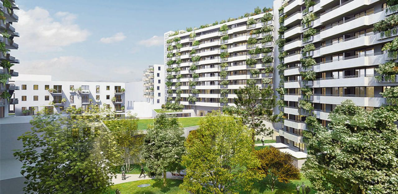 Zwischen den Wohnblöcken soll es grün sein: Alle Freiräume und die Fassade werden bepflanzt. "Urban Gardening"-Beete laden zum Garteln ein, auch Kinderspielplätze und ein Pool am Dach