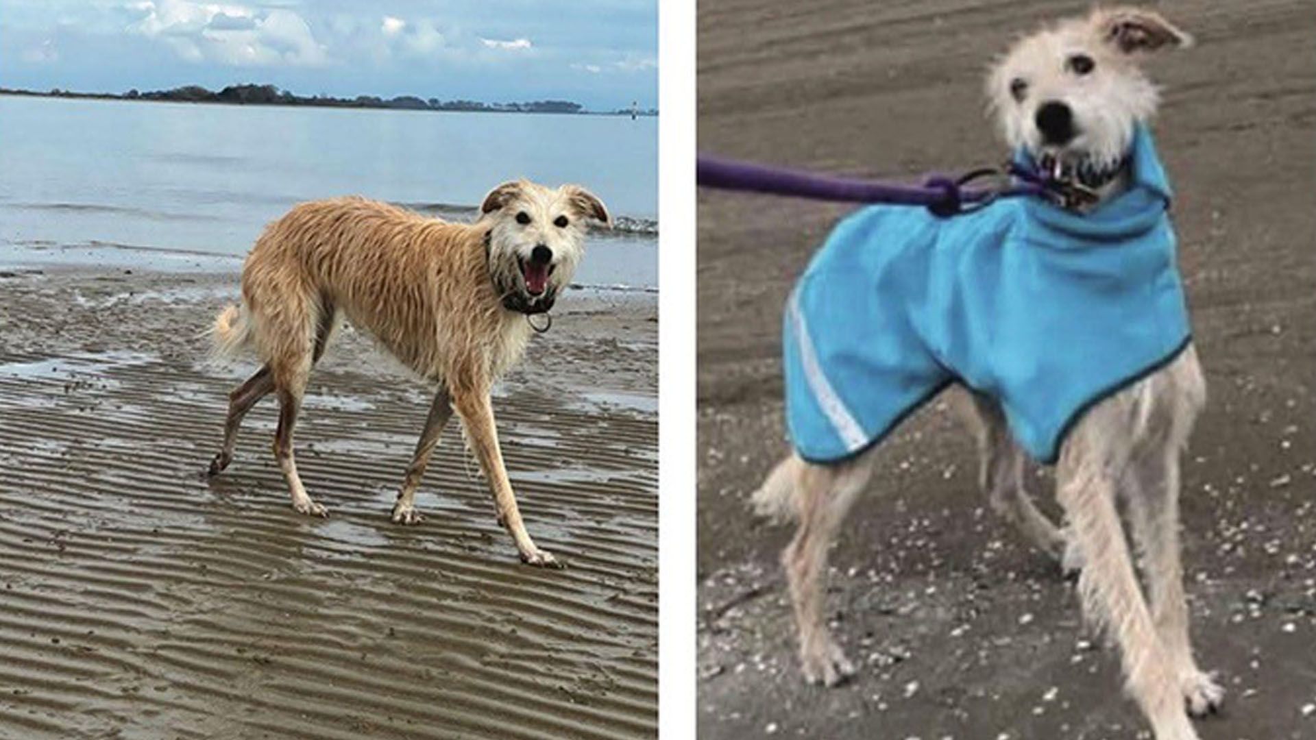 Lurcher-Greyhound Mischling – großer, sehr schlanker Hund mit etwa 23 Kilogramm.