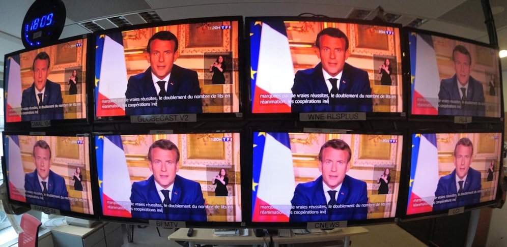 Es gebe Hoffnung, sagte Macron am Montagabend in einer Fernsehansprache. Aber in der Region Grand Est oder im Großraum Paris seien die Krankenhäuser überlastet. Der Präsident bedankte sich bei allen, die sich an die Regeln halten. Er wisse, dass dies noch schwieriger sei, wenn man in einer engen Wohnung lebe.