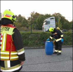 Weil Mitarbeiter eines Guntramsdorfer Transportunternehmens feststellten, dass auf einer Palette, auf der Behälter mit chemischen Stoffen gelagert waren, Flüssigkeit austrat, mussten die Florianis ausrücken.