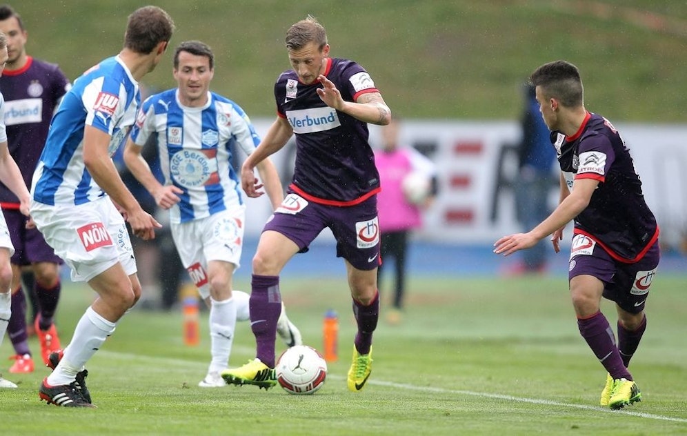 Die Austria setzte diesmal nicht wie zuletzt auf eine Abwehrvariante mit drei gelernten Innenverteidigern, sondern auf eine 4-2-3-1-Formation. Für den gesperrten Manuel Ortlechner rückte James Holland in die Mannschaft, Salamon ersetzte den erkrankten Alexander Gorgon. Sascha Horvath bekam - wie schon - zum zweiten Mal die Chance, sich von Beginn an zu beweisen.
