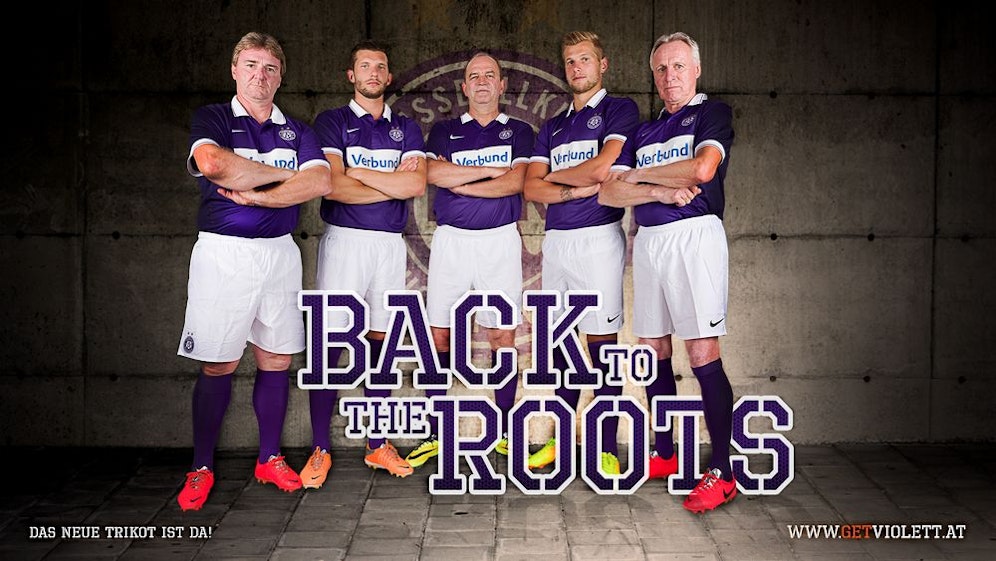 Unter dem Motto Back To The Roots präsentiert der FK Austria Wien sein brandneues Heimtrikot für die kommenden beiden Spielzeiten. Die ersten Probanden, die in die neue Wäsch‘ schlüpfen durften, könnten den Leitsatz "Back to the roots" nicht besser verkörpern.