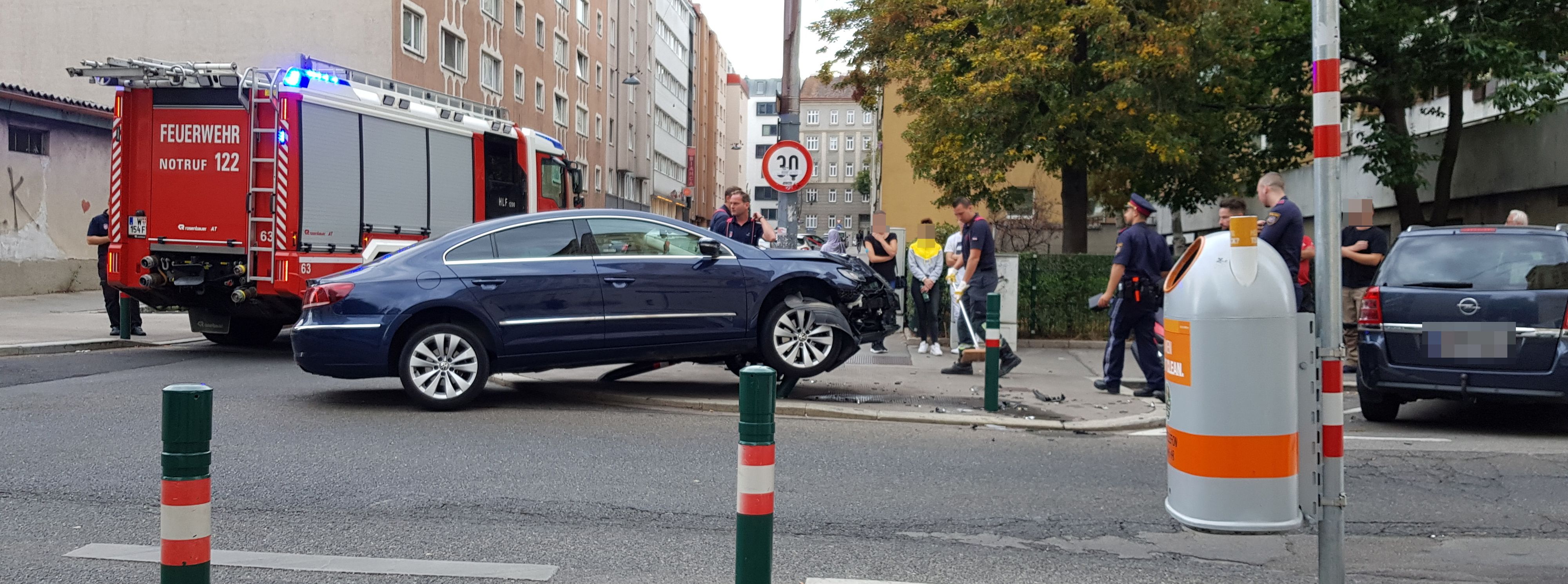 Weil sich das Auto weder vor, noch zurück bewegen ließ, musste schließlich die Wiener Berufsfeuerwehr aushelfen. Die gute Nachricht: Der Lenker überstand den Unfall laut Zeugen Meldungen unverletzt.