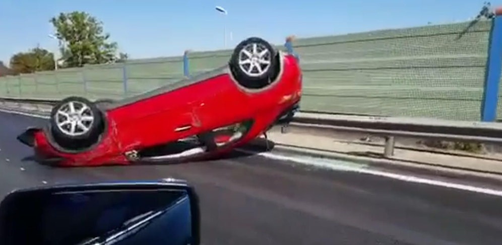 Auf der A23 bei Stadlau ist am Dienstag Nachmittag ein spektakulärer Unfall passiert: Ein Fahrzeug schwer beschädigt, aber keine Berichte über Verletzte.