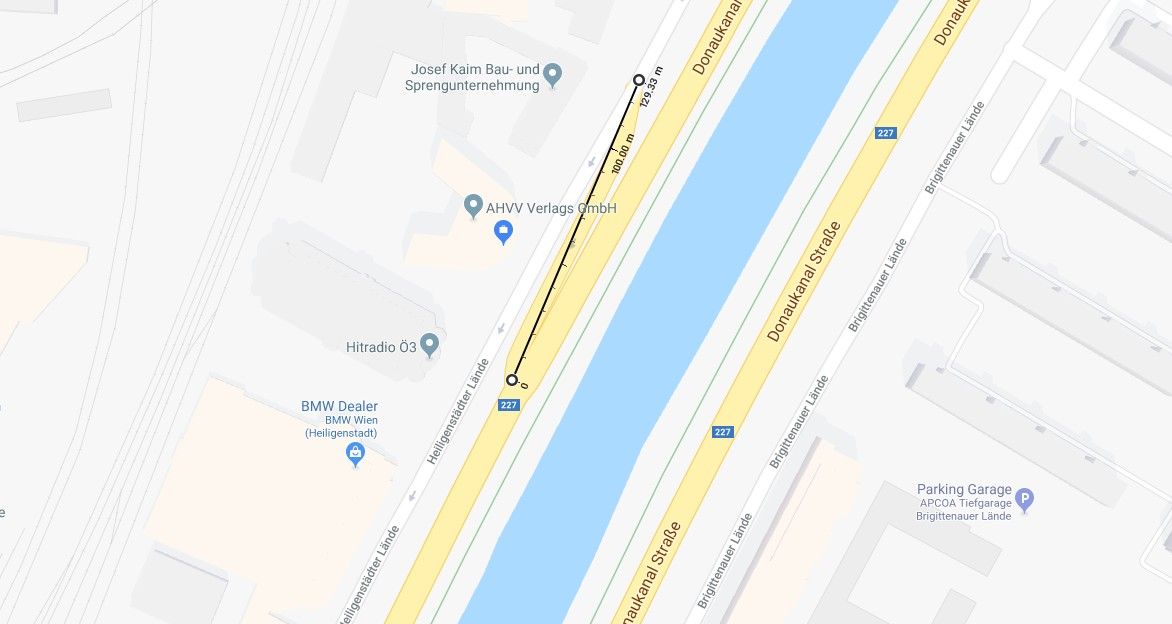 Die B 227 (Donaukanalstraße) verläuft in Wien von der Nordbrücke bis zum Knoten Prater. Die Schnellstraße führt dabei unter anderem an der Heiligenstädter Lände vorbei, wo das seltsame Schauspiel am Sonntag Mittag zu beobachten war.