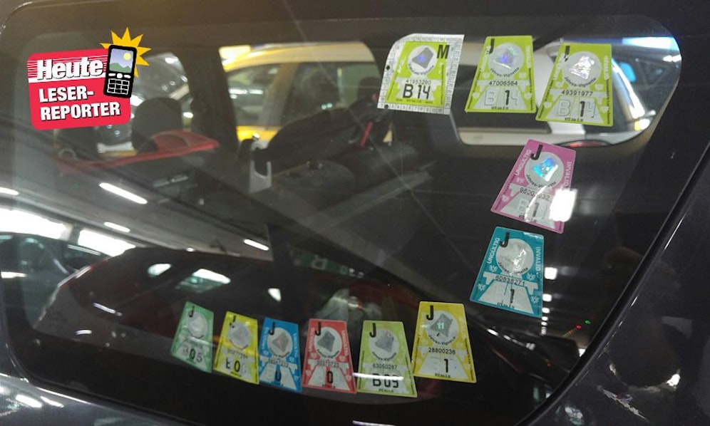 Im Laufe der Jahre sammeln sich die Pickerl an: Statt sie zu entsorgten nützte dieser Autofahrer die bunten Vignetten zur Verzierung seines Seitenfensters. Leserreporter Michael Koptis fotografierte den "Pickerl-Friedhof" vor der Shopping City Süd.