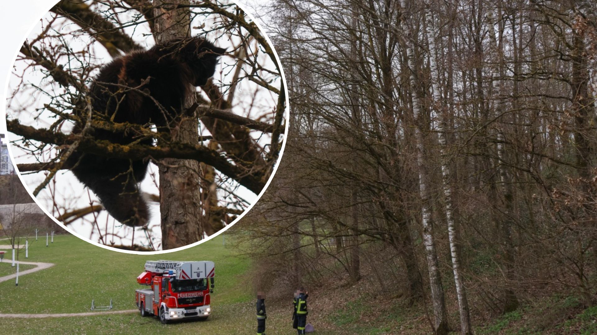 Am Nachmittag wurden die Einsatzkräfte der Feuerwehr in einen Park im Stadtteil Vogelweide alarmiert. Eine Katze hatte sich in schwindelerregender Höhe auf einen dünnen, bereits morschen Baum verirrt.