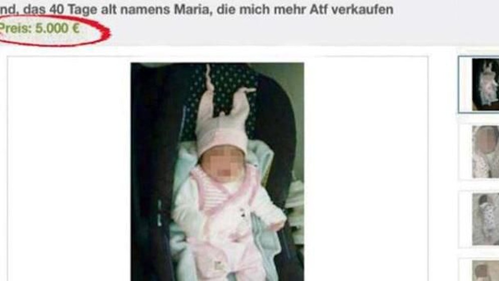 Was fällt einigen Menschen nur ein? Mit den Worten "Kind, 40 Tage alt namens Maria, für 5000 Euro zu verkaufen" versuchte ein Mann ein Baby via eBay Kleinanzeigen zu verscherbeln. User konnten es gar nicht fassen und wetterten gegen die Annonce. Wegen der heftigen Proteste wurde sie bereits nach einer halben Stunde offline gestellt und die Polizei eingeschaltet.