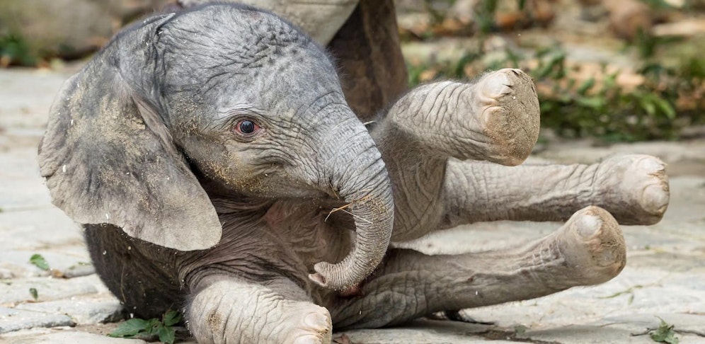 Das Jungtier ist geschätzte 90 cm groß und etwa 90 kg schwer. Bereits nach kurzer Zeit können neugeborene Elefanten auf ihren Beinen stehen – wenn auch noch etwas wackelig. Schnell machen sie die ersten Schritte. Das ist entscheidend, denn in Afrika muss die Herde auf der Suche nach Futter weiterziehen. In Schönbrunn haben die Tiere alle Zeit der Welt.