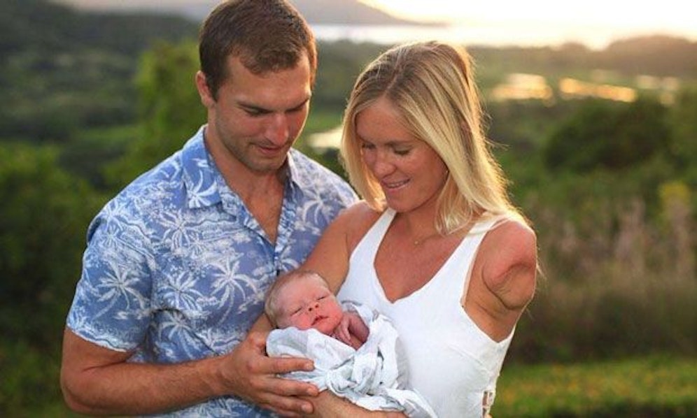 Die Sportlerin aus Hawaii brachte einen gesunden Buben zur Welt. Der neue Erdenbürger heißt Tobias und wird laut Mama sicher einmal ein Surfer.