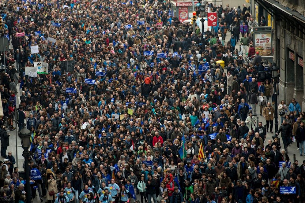 Protest gegen Spaniens Regierung: In der katalanischen Hauptstadt gingen am Samstag 160.000 Menschen für die Aufnahme von mehr auf die Straße.