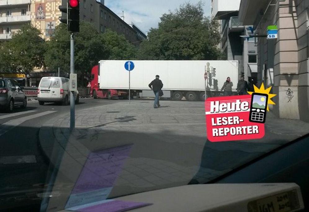 In Normalfall hätte das Schwerfahrzeug beim Einbiegen von der Arndtstraße in die Meidlinger Hauptstraße keine Probleme gehabt. Aufgrund der Baustelle schaffte der Lkw-Fahrer jedoch die Kurve nicht und blockierte den Verkehr.