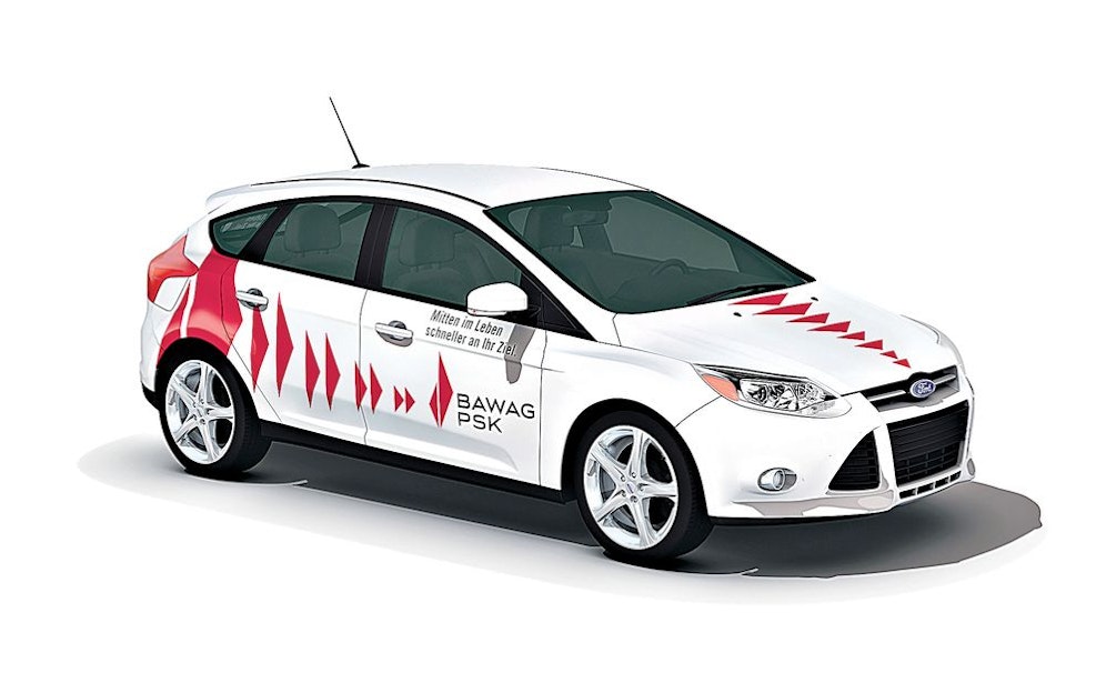 Marketing einmal anders: Die Bawag vergibt bis 30. April Kredite für den Autokauf zu 0,0 % Zinsen an all jene, die ihren Neuen per Folierung zum Werbevehikel für die Bank machen. Wichtige Vorgabe: Der Pkw darf nicht mehr als 136 Gramm CO2 produzieren.
