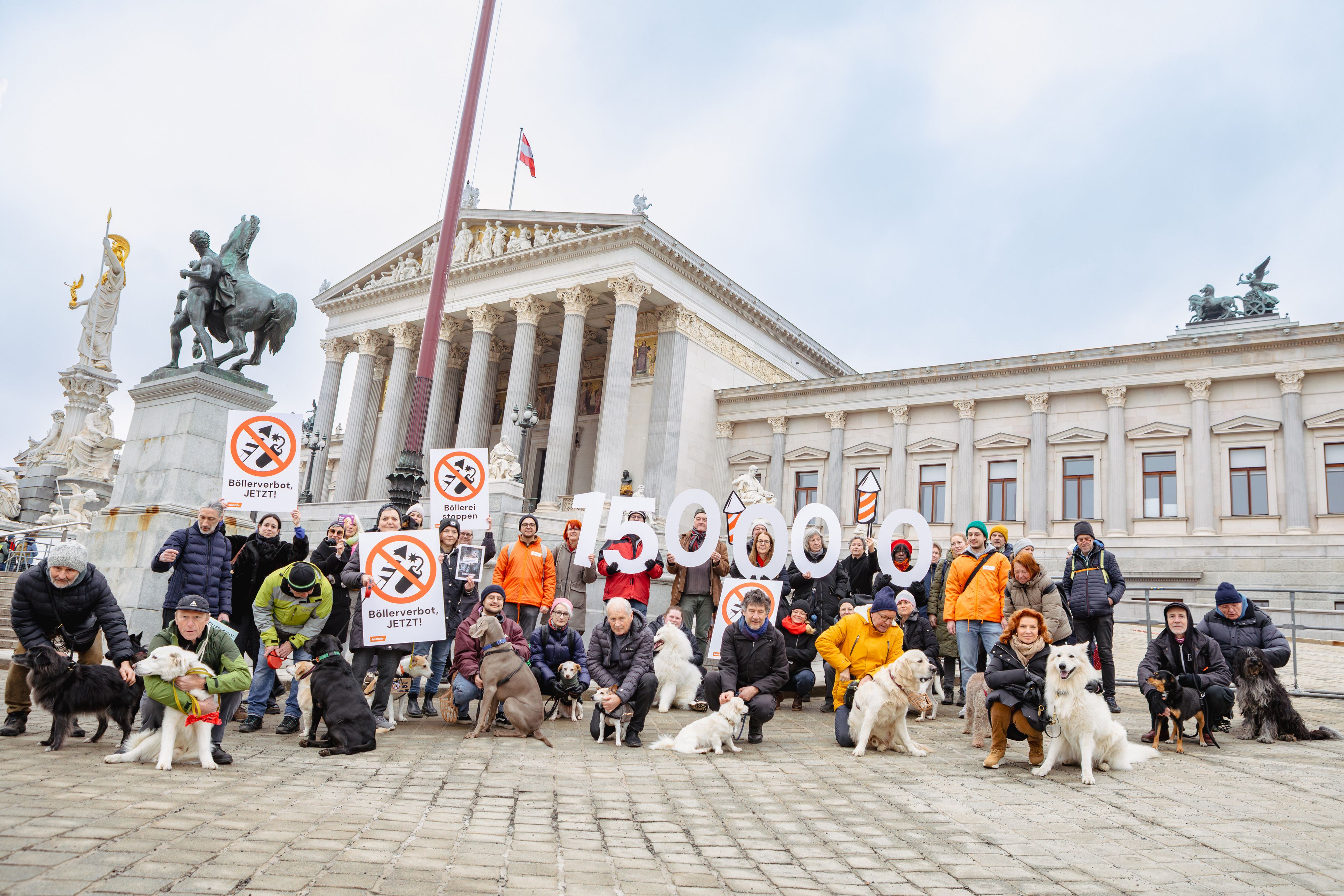 Unter dem Motto "Bellen gegen Böllern" zogen am Mittwoch Demonstranten gemeinsam mit über 20 Hunden vom Heldenplatz bis vor das Parlament – mit einer klaren Botschaft: Böllerverbot jetzt!