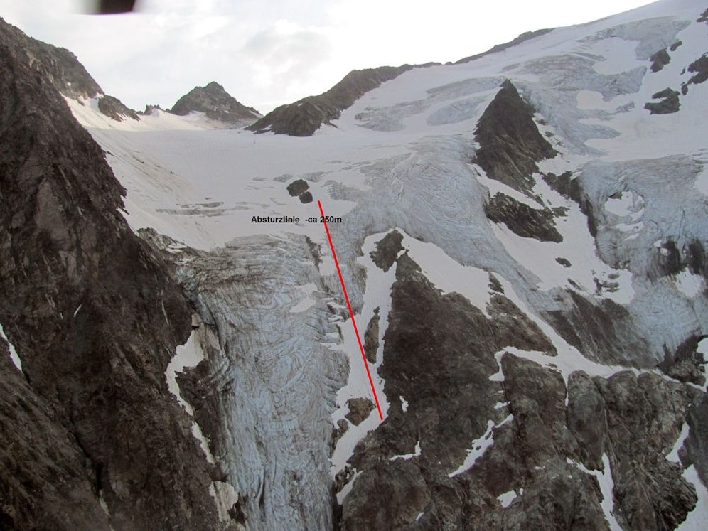 Im Schnee stürzte der 24-Jährige und rutschte im 35 Grad steilen Gelände zuerst über ein Schneefeld, dann über den ausgeaperten Gletscher. In einer Schneemulde blieb er liegen.