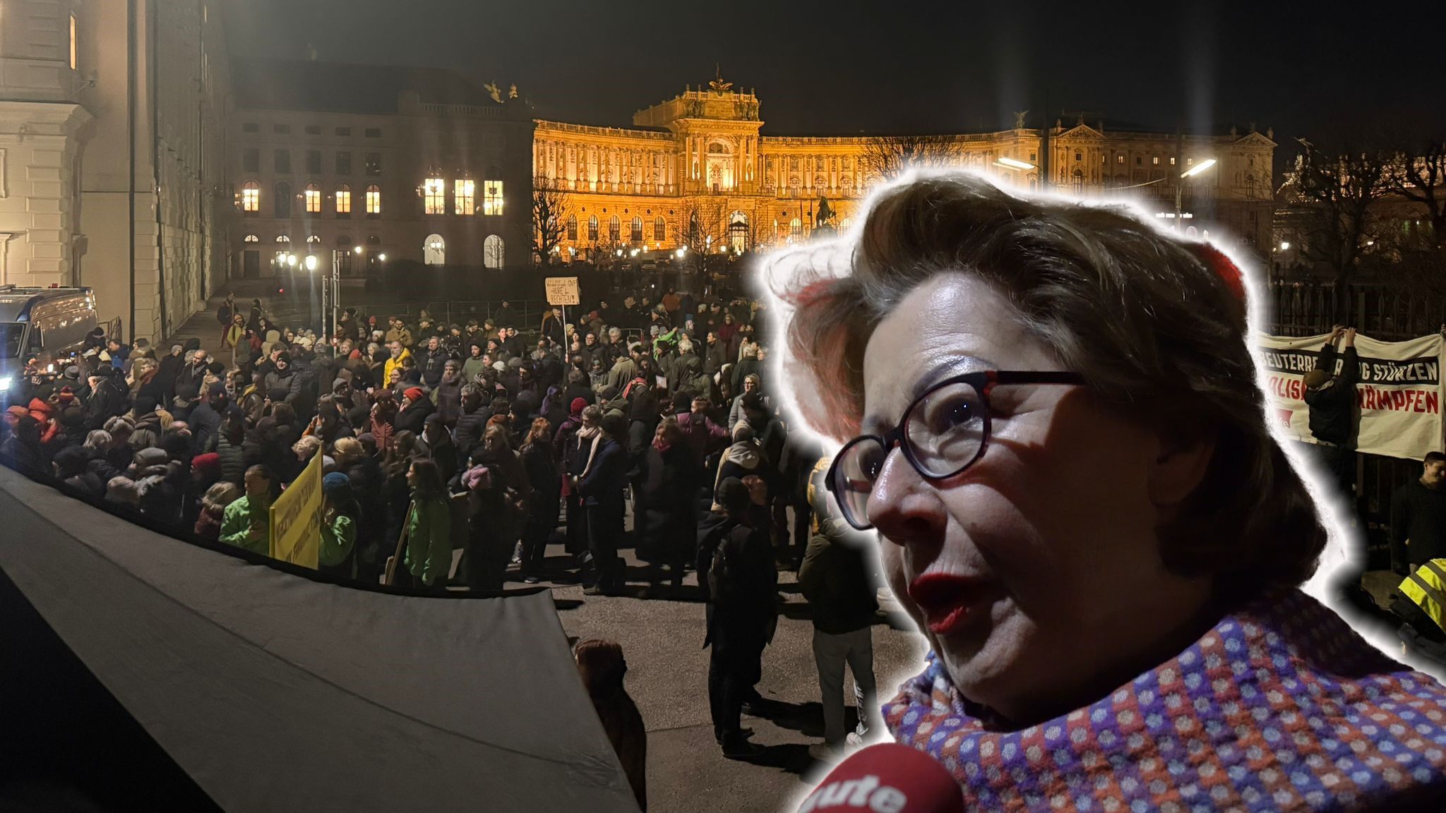"Alarm für die Republik": Unter diesem Motto versammelten sich am Donnerstag zwischen 17 und 20 Uhr rund 5.000 (nach Einschätzung der Behörden) bis 50.000 (nach Angaben der Veranstalter) Demonstrierende vor dem Wiener Ballhausplatz.