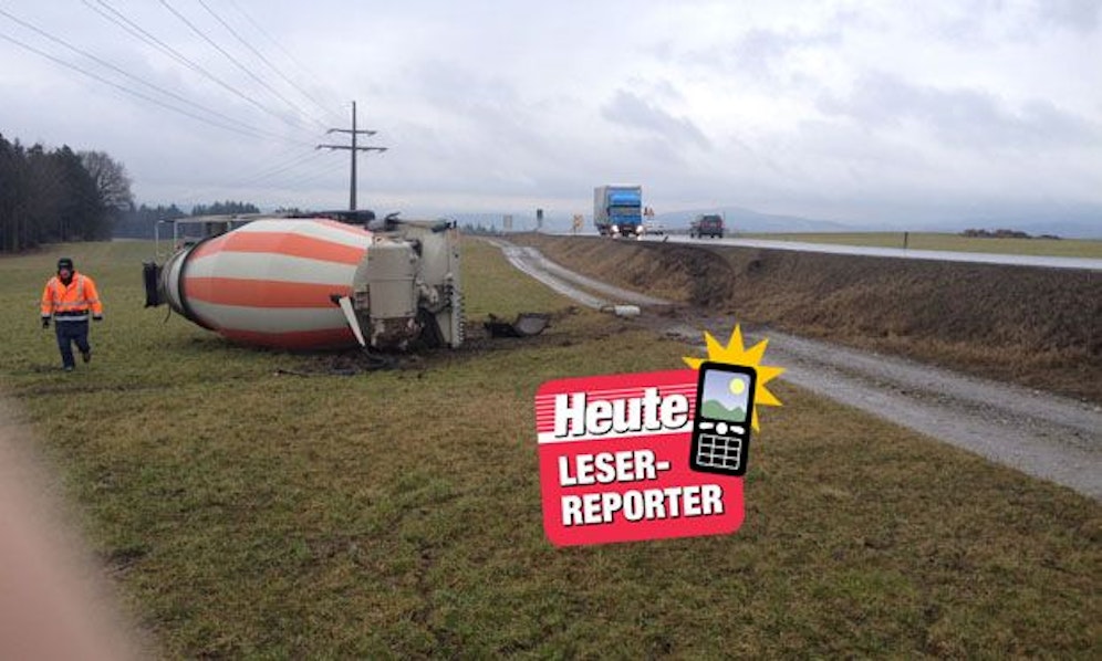In Unterweitersdorf (Bez. Freistadt) war Mittwochfrüh ein Betonmischer von der Fahrbahn abgekommen und in ein Feld geschleudert worden. Durch den Aufprall wurde die Mischtrommel vom Laster gerissen.
