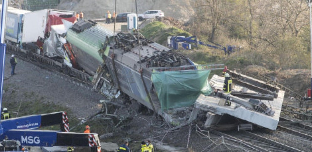 Ein Güterzug fuhr im deutschen Auggen in ein Brückenteil und entgleiste. Der 51-jährige Lokführer starb, mehrere weitere wurden zum Teil schwer verletzt.