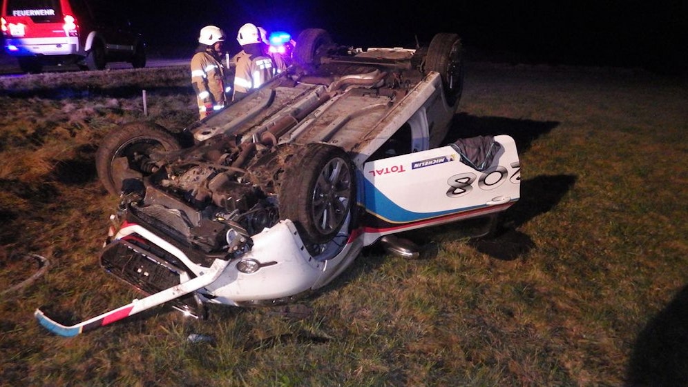 Schwerer Unfall in Mieming (Tirol): In der Nacht auf Sonntag kam eine 40-Jährige mit ihrem Wagen von der Fahrbahn ab und überschlug sich. Die Betrunkene und drei Mitfahrer wurden verletzt.