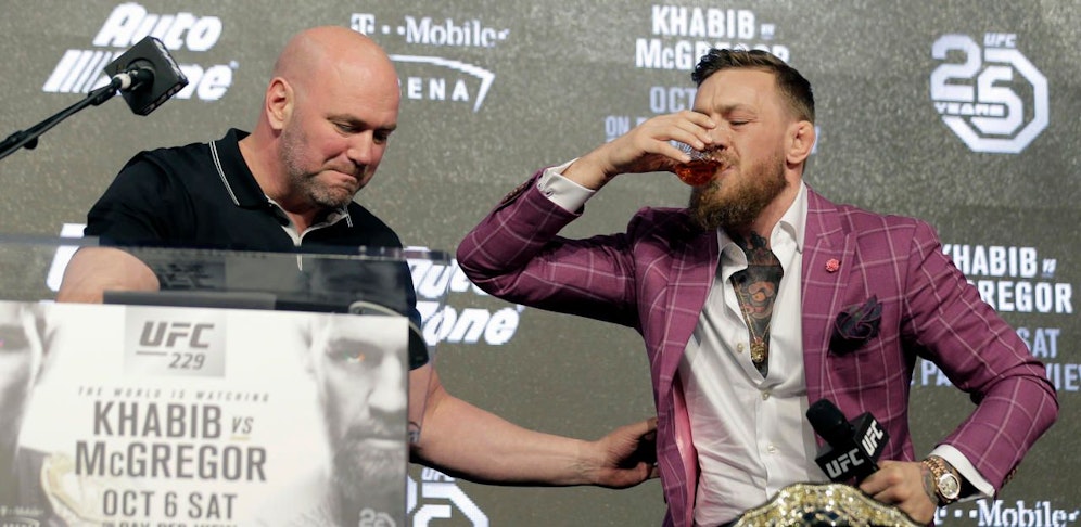 McGregor nutzte die Gelegenheit, um seinen Whiskey zu bewerben. Von diesem schien er bereits vor der Konferenz ein paar kräftige Schlücke genommen zu haben. Dem nicht genug, holte er bei seinem Auftritt eine kleine Flasche aus seinem Sakko. Dann verlangte er von Mitarbeitern ein paar Becher, um mit seinen Leuten anzustoßen, wie er meinte. Keinen Augenblick später wurden ihm mehrere Gläser überreicht. Diese füllte der Ire sofort an und reichte Nurmagomedov eines. Der strenggläubige Muslim lehnte jedoch ab, woraufhin McGregor mit einer weiteren Hasstirade ankam.