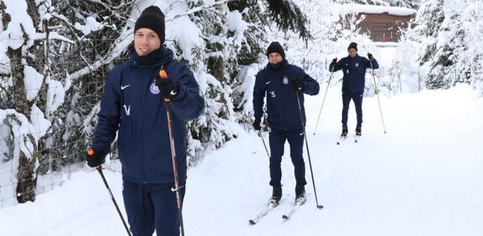 Die Wiener starteten direkt nach den Leistungstests am Montag und Dienstag zum Teambuilding nach Flachau. Im Schnee wird der Fußball gegen Skier getauscht. "Langlauf ist ein super Herz-Kreislauf-Training. Der eine oder andere spürt Muskeln, die er bis jetzt noch nie gespürt hat", so der Austria-Coach, der mit seinen Stars auch eine Schneewanderung machte und Rodeln ging. Ein bisschen Schulskikurs in Violett.