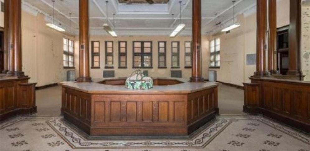 Von der ursprünglichen Bausubstanz ist einiges noch vorhanden: Die Holzarbeiten sind alle mehr als 100 Jahre alt, genau wie die beiden Kamine und der geschwungene Empfangstisch vor dem Eingang. Das Gebäude wird in seinem aktuellen Zustand verkauft, die Möglichkeiten sind aber praktisch endlos. (mst)