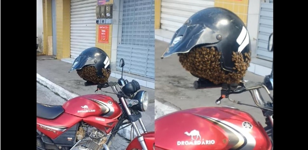 In Brasilien nahm ein Mann das gruselige Video auf. Als er sein Motorrad abstellte um Besorgungen zu erledigen, nisteten sich in der Zwischenzeit Bienen in seinem Helm sein. Mehrere Schaulustige machten von den Insekten Fotos - kein alltäglicher Anblick. (mz)