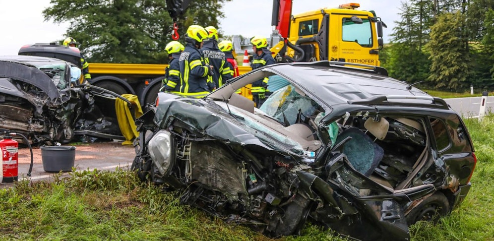 Den Rettungskräften bot sich ein furchtbares Bild. Auf der Salzkammergutstraße zwischen Regau und der Autobahnanschlusstelle Regau (Bez. Vöcklabruck) waren aus bisher unbekannter Ursache zwei Fahrzeuge frontal kollidiert.