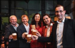 v.l.n.r.: WUK Geschäftsleiter Vincent Abbrederis, Ottakringer-GF Matthias Ortner, Stadträtin Ulli Sima, die Aufsichtsratsvorsitzende der Ottakringer Getränke AG, Christiane Wenckheim und Ottakringer-GF Tobias Frank, Geschäftsführer der Ottakringer Brauerei © Jolly Schwarz